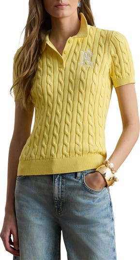 Braided cable stitching enhances the texture and close fit of this short-sleeve polo sweater made with a signature embroidered chest logo.