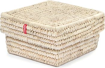 This box with lid is made from natural fig leaves in Jhnaidah, Bangladesh. The lid can also be used as a separate tray. This is a craft with long traditions, and our artisans are involved in all steps of the process from harvesting the fibers to washing, drying, and weaving the final product. Working for Others allows our artisans to provide for their families, improve their living conditions, and put their children through school.