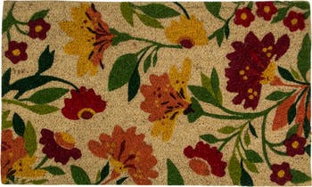 Welcome guests to your home with style with this fall floral doormat! This mat combines functionality with a touch of sophistication, making it the perfect addition to any doorstep. Its yellow, orange and green and floral design effortlessly complements a variety of exterior decors, adding a subtle yet eye-catching element to your entryway. Product Features: Floral design rectangular doormat Doormat accented with a yellow, orange and green floral design Non-skid durable backing which helps to keep your doormat securely in place Recommended for both indoor and outdoor use Care instructions: rinse with a hose and air dry Dimensions: 18"H x 30"W x 0.75"D Material(s): coir/rubber