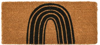 - This minimalist doormat features natural coir with a contemporary rainbow design