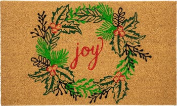Natural Coir "Joy" Wreath Christmas Doormat 18" x 30"