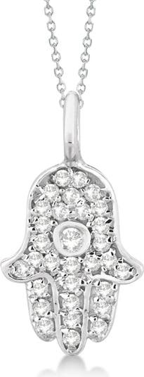 14k white gold Hamsa hand pendant necklace featuring 0.17ct sparkling diamonds for a meaningful and stylish statement piece.