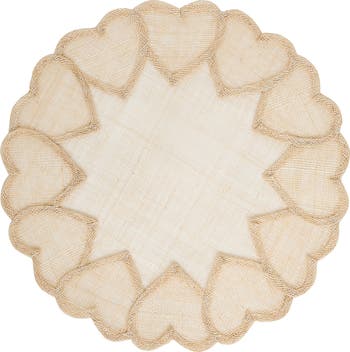 Embroidered hearts encircle a handwoven abaca placemat that will bring darling texture and charm to your tablescape.