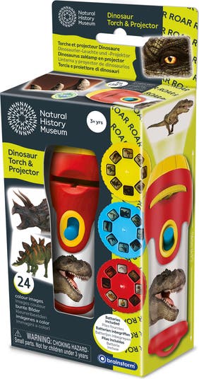 DINOSAUR TORCH PROJECTOR - This handy torch is also a photo projector, projecting colorful images up to 39 inches (one meter) wide onto walls and ceilings. Includes 24 fascinating dinosaur images including T-Rex, Stegosaurus, Triceratops and more. 3 DISCS WITH 24 IMAGES: The torch comes with three slide discs with 24 color photographs. Swap and change the slides easily by inserting the chosen disc then rotate the disc round to view the fantastic color images which project up to one meter wide. Images are easily focused by turning the lens head. DOUBLES AS A FLASHLIGHT: It can also be used as a normal torch without the slides in place and is great for keeping on bedside tables to give comfort to children during the night. The torch measures 12cm long and 4cm in diameter 4.75" x 1.5"). AN IDEAL GIFT: A perfect, fun yet educational, gift for boys and girls who are interested in dinosaurs. Kids grow out of toys earlier and earlier but torches still appeal to kids into their tween and teen years. Ideal for pajama parties and sleepovers. THE NATURAL HISTORY MUSEUM is the leading brand for conveying the incredible diversity of nature. The museum itself is a major world famous London landmark attraction with over 6 million visitors a year, incorporating a world leading science research center, 80 million natural history specimens and a major collection of natural history paintings and prints.