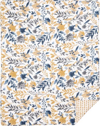 Transform your space with the rich color and dynamic design of Natural Home collection. elaborate leafy sprigs with delicate buds and subtly blooming flowers paint a lively yellow, blue, and indigo scene on a fresh white ground. Finished with an intricate floral medallion stitching design and reversible to an abstract, dotted geometric design in yellow for more bold styling options. Crafted of cotton and machine washable for easy care. Love this pattern? Natural Home is also available in our bedding and tabletop collections, and a ruffled valance.
