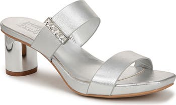 Contour+ Comfort technology offers a premium fit in this elegant slide sandal highlighted with crystal and metallic accents.