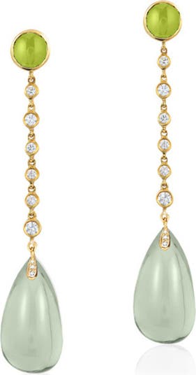 Chains of bezel-set diamonds connect smooth, colorful cabochons on these 18-karat-gold drop earrings that combine playful movement and elegant shine.