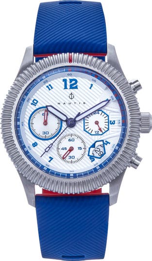 The Meridian by Nautis combines bold design with functional precision. Featuring a dynamic chronograph dial and a comfort-fit rubber strap, it’s built for movement—whether you're charting new territory or mastering your daily grind.