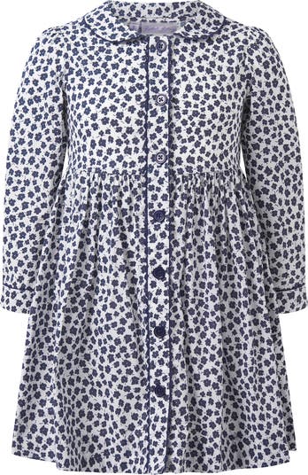 This beautiful button-front dress is perfect for your little one this season. Featuring an elegant navy floral print on ivory background and coordinating navy trims on collar, cuffs and button placket, the dress is stylishly soft and comfortable. Front button fastening make it easy to dress up or down. Kids will love the playful pup print!