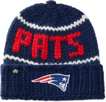 Introducing our official Lele Sadoughi x NFL wool beanie collection. Hand-knit using 100% merino wool, this New England Patriots beanie has 'Pats' hand stitched across the top with official team logo along the brim.