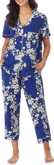 Sleeping is an art form, and you'll be a master at it in these cropped pajamas made from stretchy organic-cotton jersey brightened with painterly blooms.