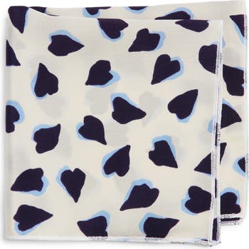 Navy & White Hearts Silk Pocket Square