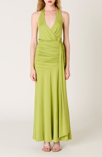 Reserve a spot on your packing list for a knit maxi designed with an open back and offered in a verdant hue.