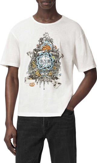 An eclectic branded graphic lends bold style points to an easygoing T-shirt cut from pure, breathable cotton.