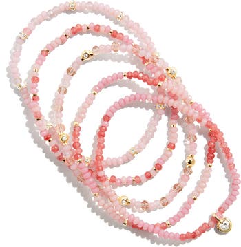 This beautiful set of stretch bracelets add delicate shine to your wrist with their faceted beads and polished golden hardware.