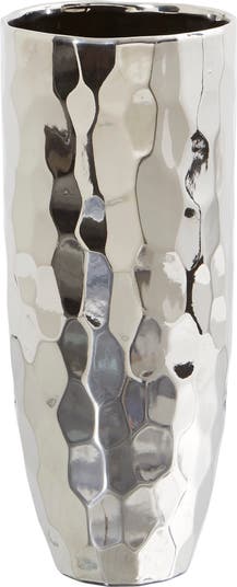 Add some glam to your space with this Designer Silver Cylinder Vase. If you want to bring attention to your greenery, look no further. Texture, color, and glare all in one. Perfect for Hollywood glam, modern, and many other décor styles. Standing 13", this tall cylinder vase will attract attention wherever displayed. House hydrangeas, roses or other flowers.