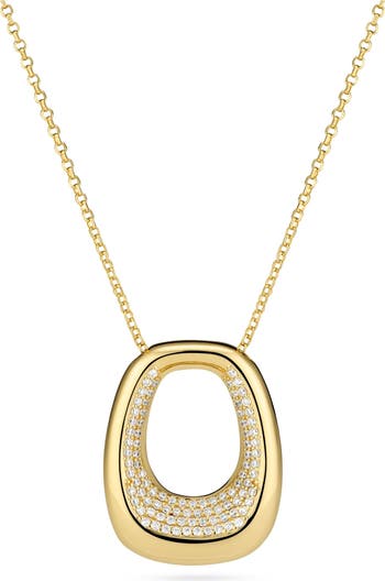 Necklace made of 925 Sterling Silver with a polished surface, and handset with facet cut white zirconia.