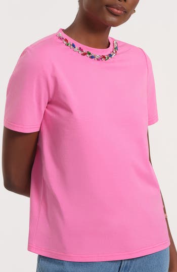 Gleaming embellishements create a necklace-inspired look for this stretch-cotton T-shirt.