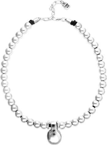Necklace of medium spheres plated in sterling silver and large dial. A constellation that revolves around you. Silver spheres line up to remind you that your core is always present, strong, and serene.