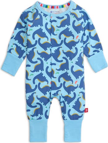 Adorable dinosaurs roam across this cozy romper featuring fold-over cuffs that convert the style to a footie. Made from supersoft and breathable fabric with plenty of stretch, it's finished with a magnetic closure for easy dressing and change.