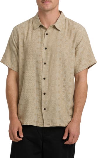 A tonal jacquard of subtle geometrics details this lightweight sport shirt made from a lightweight cotton blend.