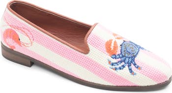 A cushioned footbed and leather lining offer lasting comfort in this classic loafer enlivened with a charming needlepoint design stitched by hand.