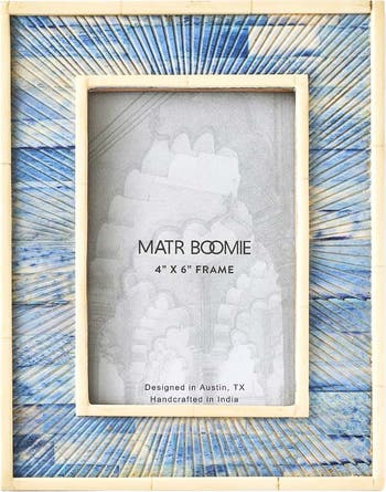 Showcase your cherished memories with the Neela Picture Frame, crafted from ethically sourced bone and beautifully dyed in rich shades of blue. Inspired by the coastal beauty of the sea, each frame features unique variations that add character and charm. The picture frame is easily accessed with metal swivel tabs and removable back. Sizes include: 3x3, 4x6