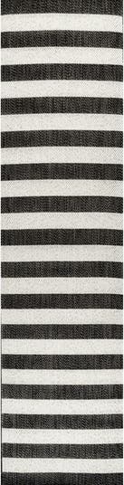 Bring home a timeless stripe rug for your modern cottage, beach bungalow or farmhouse. Our durable low pile rug features wide, woven stripes in two contrasting colors. Add graphic punch to your living room, dining room, bedroom, or porch with this easy-care, family-friendly rug.