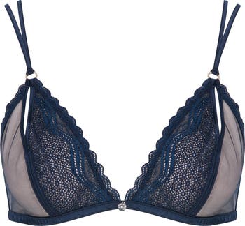 Neima Bra combines comfort and elegance with its triangular underwire design. It offers an art deco look with its lace games and creates a mysterious glamour with its hidden cleavage in the front. A perfect choice for those looking for a comfortable and sophisticated option. Complete the look with the matching Neima thong.
