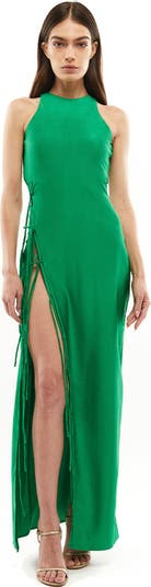 A classic maxi dress with a sexy twist. A maxi-length dress made of sculpting fabric, with a deep slit and ties along the entire length of the leg, so you control the level of openness. When you want to look sophisticated and feel sexy, this is the perfect dress.