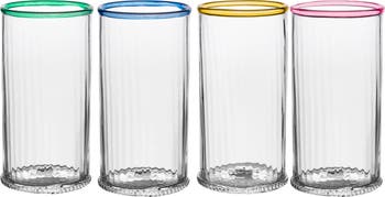 Handmade and individually signed, this set of Bohemian glass tumblers sports a fresh, modern wink of color and distinctive ripples that come from mouthblown craftsmanship.