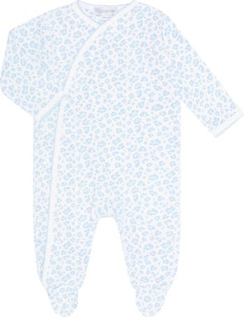 Get ready to pamper your little one with our Blue Cheetah Print Crossover Footie! Made of 100% pima cotton, it offers ultimate comfort and edgy style for your baby. The chic blue picot trim adds a touch of sophistication to the classic design. Perfect for playtime or bedtime.