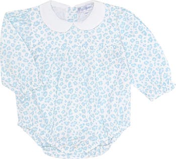 Elevate your baby's wardrobe with our stylish blue cheetah print long sleeve bubble. This classic piece features a timeless round white collar, adding a touch of elegance to the playful cheetah print. Crafted from premium 100% Peruvian Pima cotton, this bubble ensures exceptional softness, breathability, and durability for your little one's delicate skin.Designed with practicality in mind, the bubble includes three convenient snaps in the diaper area for easy and quick changes. The long sleeves provide extra warmth and coverage, making it perfect for any season.