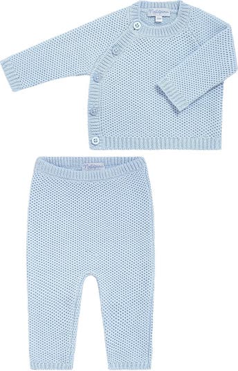 Beautifully designed for comfort and charm, this two-piece honeycomb knit set includes a soft long-sleeve top and matching pants. The delicate textured knit offers lightweight warmth and breathability, perfect for everyday wear or cozy naps. With its timeless look and gentle feel, this set brings effortless style to your little one’s wardrobe , an ideal choice for both lounging and special outings. 100% cotton Two-piece set: top and pants Soft, breathable honeycomb texture Comfortable fit for daily wear