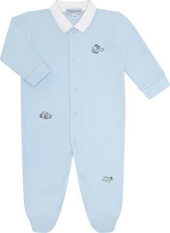 A timeless favorite, now with embroidered vintage vehicles. This classic snap footie is made of buttery-soft Pima cotton and features gentle ruffles, detailed embroidery, and snap closures along the front and legs. Perfect for gifting or elevated daily wear.