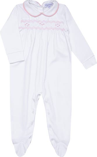 Charming! This Smocked Baby Footie Bodysuit is for boys and girls. It has a perfect finish and smocked hand embroidery. Just like most things, the quality of cotton can vary greatly. The true secret behind the softness and quality of our products comes from the northern coastal valleys of Peru, known as Peruvian Pima Cotton. The properties of this fiber create for a more durable fabric, that gives it its unparalleled luxurious touch that is most desired. Snap Leg Closure Buttons located behind the collar for easy on-and-off Long sleeves 100% Peruvian Pima Cotton Machine Washable Made in Peru