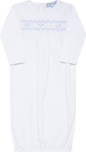 Our Nella baby boy gown is perfect for newly babies and parents, for its timesaving diaper changes, even in the middle of the night. Features like integrated scratch mitts, smocked hand embroidery make our gowns stunning as well as functional. Just like most things, the quality of cotton can vary greatly. The true secret behind the softness and quality of our products comes from the northern coastal valleys of Peru, known as Peruvian Pima Cotton. The properties of this fiber create for a more durable fabric, that gives it its unparalleled luxurious touch that is most desired. Long sleeves Mitten cuff 100% Peruvian Pima Cotton Machine washable Made in Peru