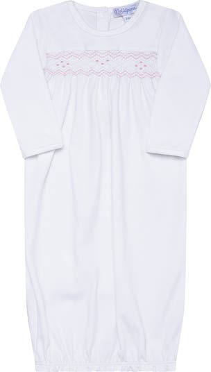 Our Nella baby girl gown is perfect for newly babies and parents, for its timesaving diaper changes, even in the middle of the night. Features like integrated scratch mitts, smocked hand embroidery make our gowns stunning as well as functional. Long sleeves Mitten cuffs 100% Peruvian Pima Cotton Machine washable Made in Peru