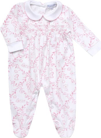 Our beautiful smocked footie comes with an imprinted design and smocked detailing. It has also a ruffled collar, snap leg closure, and an adjustable button behind the collar. Made with 100% Peruvian Pima cotton makes this footie a comfortable and durable infant wear piece. This footie allows your baby to crawl, walk, sleep and cuddle without any hassle. The properties of this fiber create for a more durable fabric, that gives it its unparalleled luxurious touch that is most desired. Snap Leg Closure Buttons located behind the collar for easy on-and-off. Long sleeves 100% Peruvian Pima Cotton Machine Washable Made in Peru *This beautiful print has come to life thanks to Pearly Gates Designs.