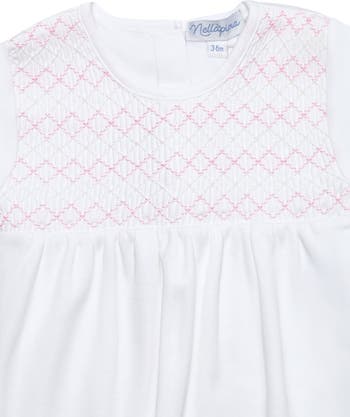 A timeless baby gown crafted from 100% Pima cotton and finished with a generously proportioned, 100% hand-smocked panel across the chest. The wider smocking allows the fabric to drape softly, providing a relaxed and flexible fit that moves comfortably with baby and adapts beautifully as she grows. Designed especially for newborn comfort, this gown features long sleeves, gentle gathers, and an elasticized bottom for easy diaper changes. Exceptionally soft, breathable, and gentle on delicate skin, it is ideal for sleep, lounging, everyday wear, or gifting. Made from premium Pima cotton, this classic pink baby gown combines heirloom craftsmanship with modern practicality, making it a must-have essential for newborns and infants. Details: 100% Pima cotton 100% hand smocked Generous smocked panel for comfort and flexibility Soft, breathable, and lightweight Elasticized bottom for easy changes Button closure at back Color: Pink & White