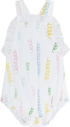 Crafted from 100% premium Peruvian Pima cotton, the lightweight fabric ensures all-day comfort, while the adjustable cross-back straps and ruffled details add a touch of elegance. With elasticized leg openings and snap closures for easy changes.