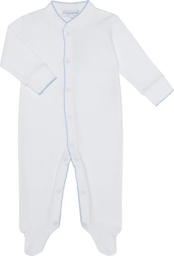 How chic! Our Baby Footie Bodysuit, crafted from elegant White Bubble fabric, is the perfect addition to your little one's wardrobe. Adorned with Picot Trim details in three gorgeous colors: Pink, White, or Blue. The true magic behind the softness and excellence of our products comes from the Peruvian Pima Cotton, which is found in the valleys of the north coast of Peru. The unique properties of this fiber result in a more durable fabric that possesses an unrivaled touch of luxury, making it the most desirable choice. Full snap opening for easy dressing Long sleeves 100% Peruvian Pima Cotton Machine washable Made in Peru