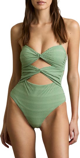 Serve up confidence in this twist-front swimsuit made with lots of stretch and adjustable ties for a curve-hugging fit.