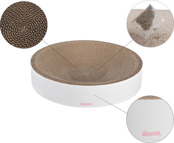 Modern and cozy cat-scratcher bowls are perfect for active scratching and relaxed snuggling. This has a corrugated cardboard interior and a checkered design around the outside. The round shape is perfect for cats that don't like a soft bed.