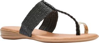 Polished hardware highlights the toe-loop detail of this comfort-cushioned sandal complete with a braided strap.