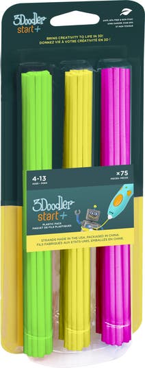 What it is: A pack of 75 slim filaments in 3 bright hues designed for use with your 3Doodler 3D printing pen (sold separately).