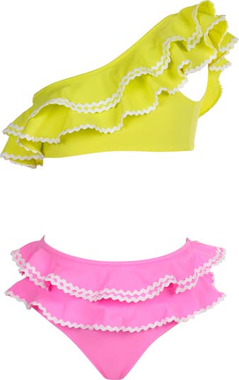 Neon One-Shoulder Multi-Ruffle Two-Piece Bikini