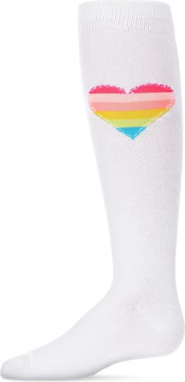 Let your little one show some love wherever they go with our Neon Stitched Heart Knee High Sock. This cotton blend knee high sock has a solid base with a bold and beautiful striped heart printed on the calf for fashion points. Whether worn on a playdate or for school, this sock comes in a variety of sizes and colors for every big hearted kid!
