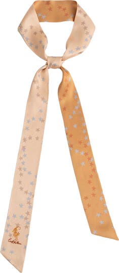 The "Neon Tiger" silk skinny scarf, also known as a silk twill scarf, is your ultimate versatile accessory-perfect as a hair scarf, neck scarf, or bag accent. This luxurious scarf comes in a stunning Champagne hue, making it a statement piece that effortlessly blends elegance with bold, modern flair. Crafted from premium silk, this lightweight scarf features a mesmerizing design of glowing stars and fierce tigers, creating a striking contrast against the soft, shimmering backdrop.