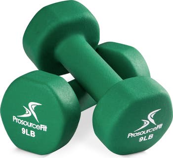 ProsourceFit set of two Neoprene Dumbbells are ideal for helping you get started with strength training and for improving your fitness. Strengthen and sculpt muscles with soft coated dumbbells that are gentle on hands and prevent callouses, yet provides a non-slip grip for optimal performance and safety. Perfect for group training classes, personal training and at-home workouts, the protective coating is safe for floors and the hexagonal shape prevents the weights from rolling around when you set them down. Color-coded weights help you easily eye the right weight for the exercise you’re performing. The lighter weights can be used while walking and for physical therapy, as well as general toning. Heavier weights are great for exercises like shoulder presses, bicep curls, weighted lunges, triceps extensions, chest presses, weighted squats and much more!